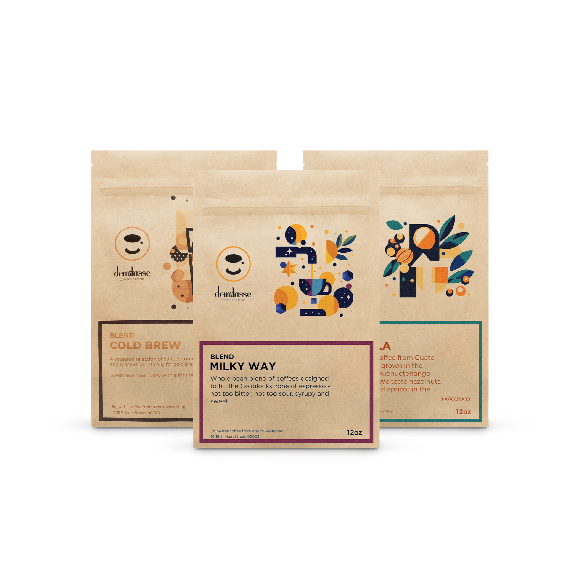 Milk chocolate, caramel, brown sugar, honey, hazelnut, spice, red grape, tangerine, stone fruitDemitasse Variety Pack